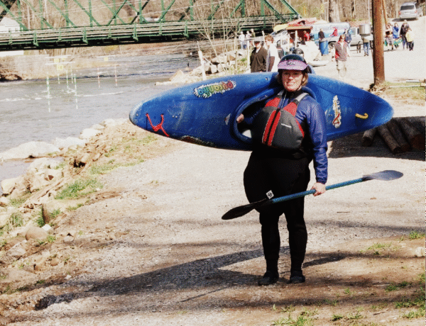 Suzanne Simmons gets ready for another race at the Webster Wildwater Weekend event.
